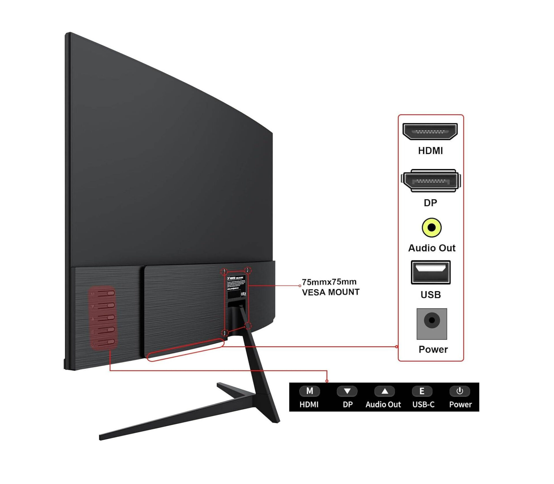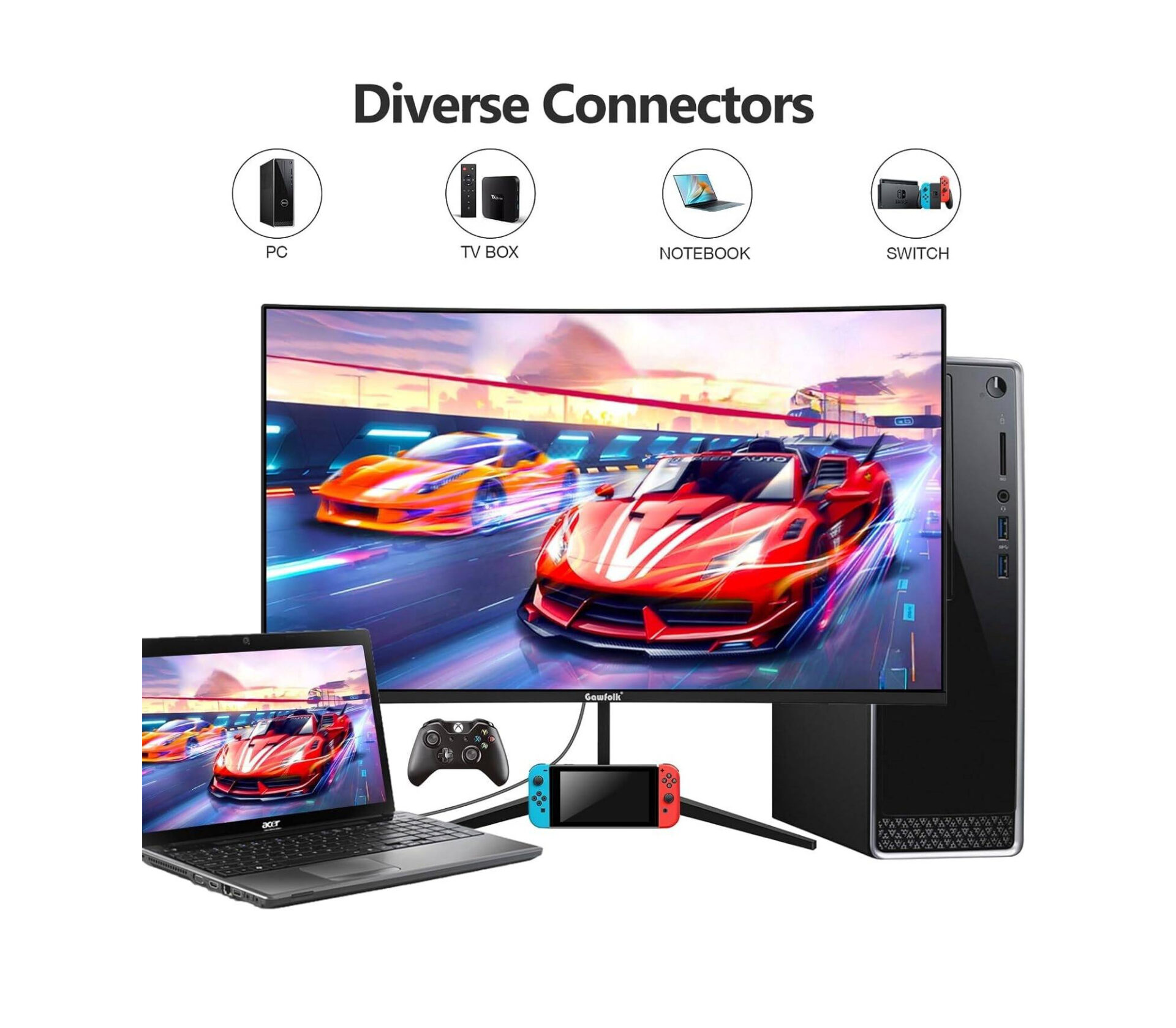 Gawfolk GF240D Curved Gaming Monitor, 24" VA Display, FHD Resolution, Up to 180Hz Refresh Rate Gaming Monitor
